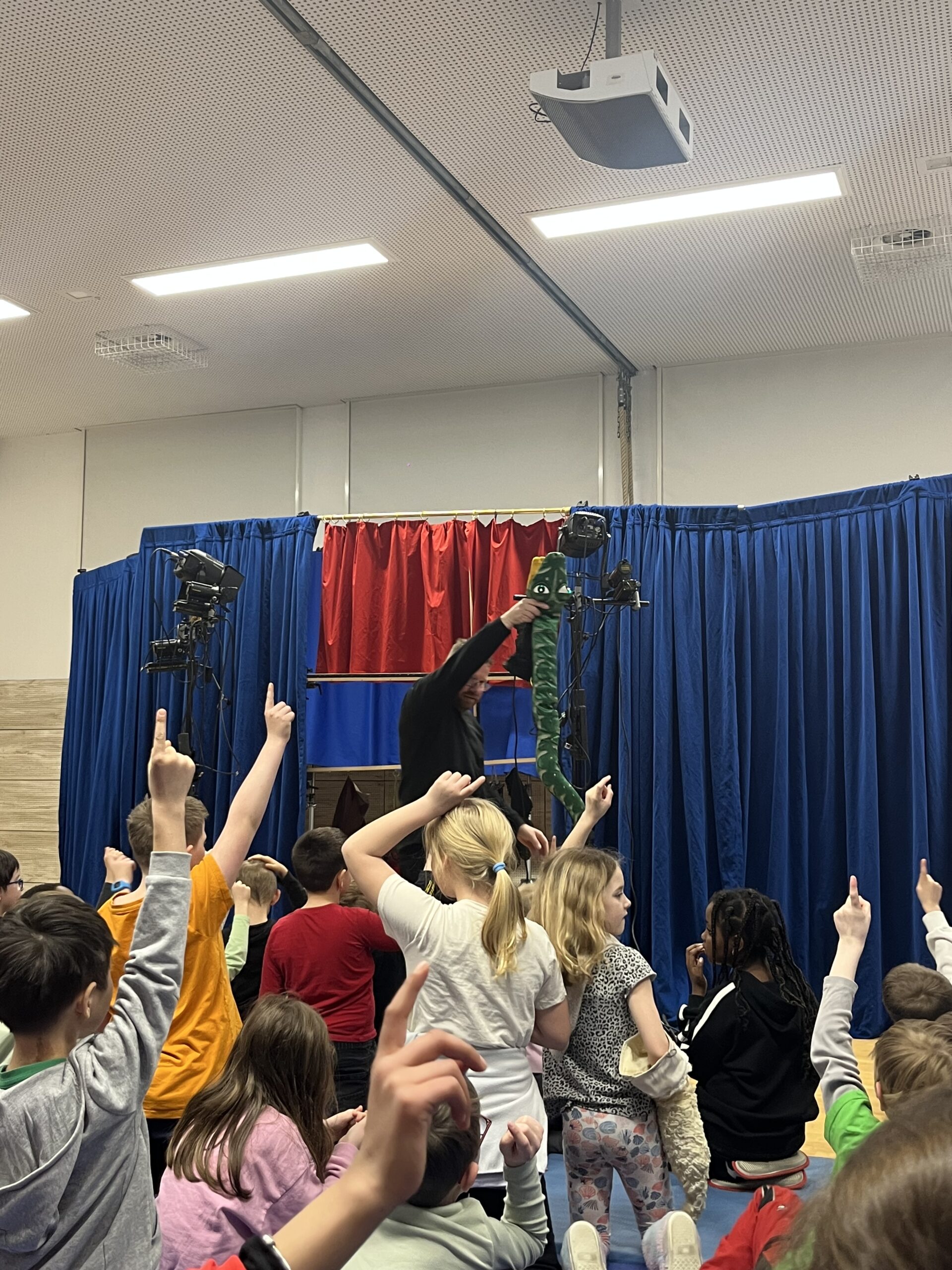 Am vergangenen Freitag wurde es in unserer Turnhalle ganz besonders spannend: Der Puppenspieler Andreas Blaschke war zu Gast und brachte ein Ostertheaterstück für unsere Schüler*innen.