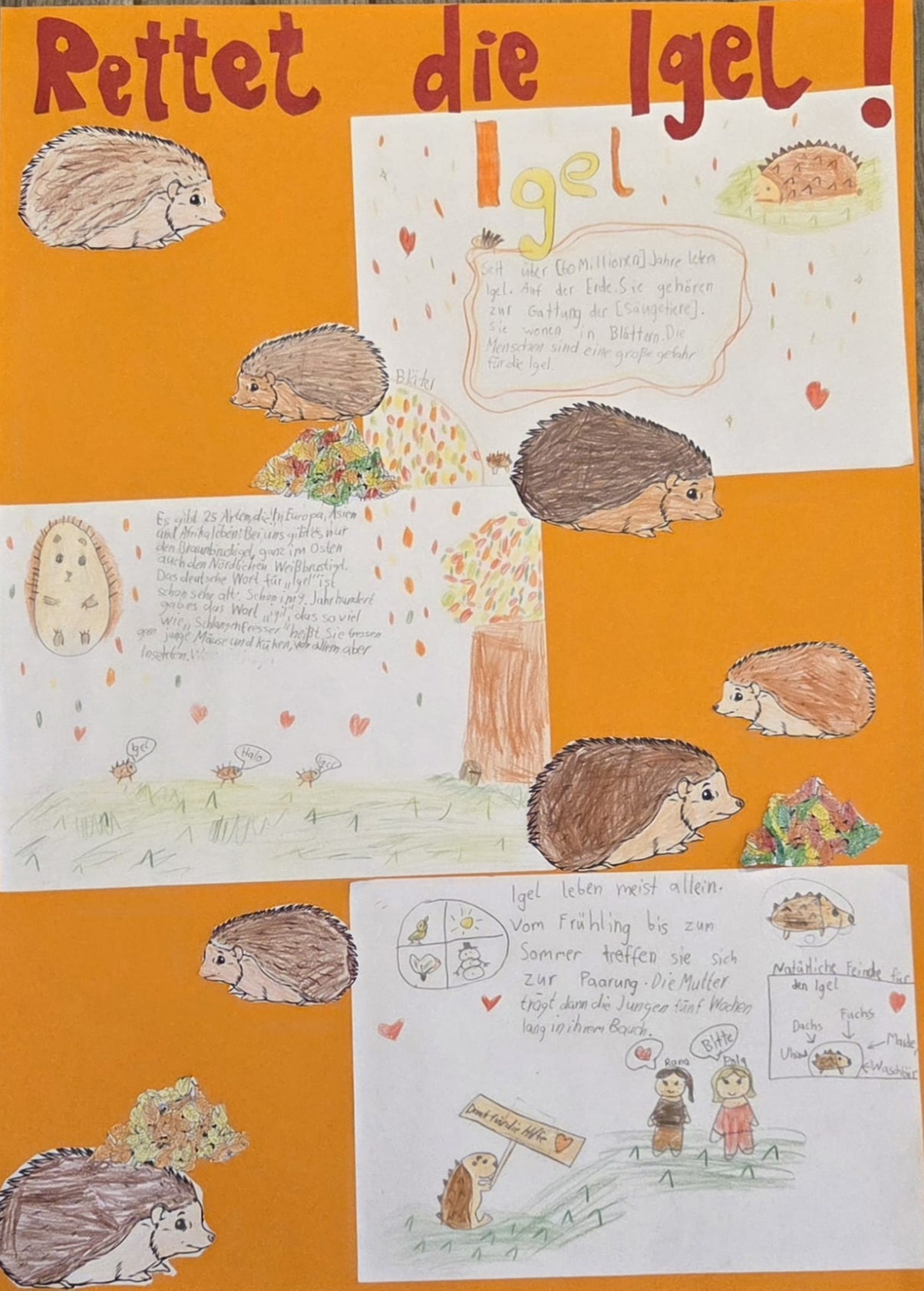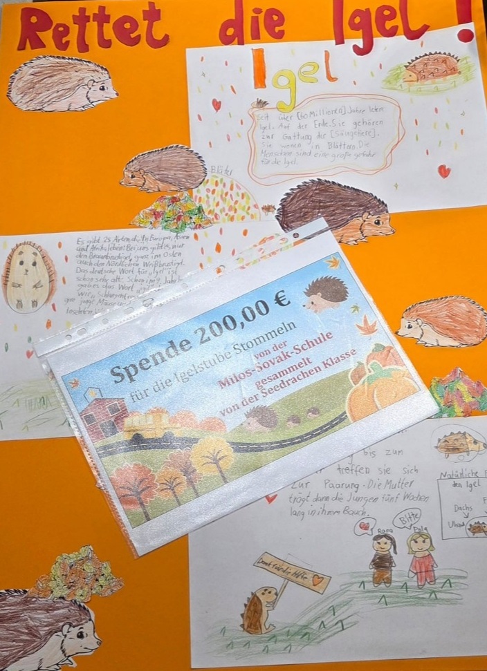 Die Schüler*innen der Seedrachenklasse (Klasse 4) lernten die Lebensweise des Igels kennen und erkannten, dass der Igel besonders geschützt werden muss. Der Schutz dieser Tiere ist wichtig, weil sie durch den Menschen immer stärker bedroht sind.
